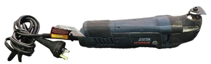 This Bosch GOP 250CE multi-tool is a versatile and reliable workshop essential. Featuring a powerful motor and a range of attachments, it can handle a variety of tasks with ease. The tool has been well-used but remains in working condition, ready to tackle your next project.