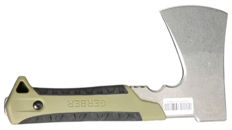 This robust Gerber Pack Hatchet Flat Sage is a versatile hand tool that has been well-used but remains in working condition. Crafted with quality materials, it is suitable for a variety of outdoor tasks, from light chopping to kindling preparation. Its compact design makes it easy to transport and store, making it a practical addition to any camping or hiking kit.
