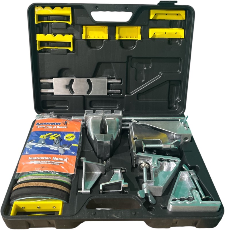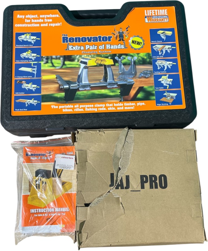 This versatile clamping system from The Renovator is a practical tool for a variety of DIY and home improvement tasks. The Extra Pair of Hands Clamp allows you to securely hold items in place while you work, freeing up your hands for more precise and efficient project completion. With spare clamps and a comprehensive manual included, this well-used but functional clamping system is a valuable addition to any toolbox.