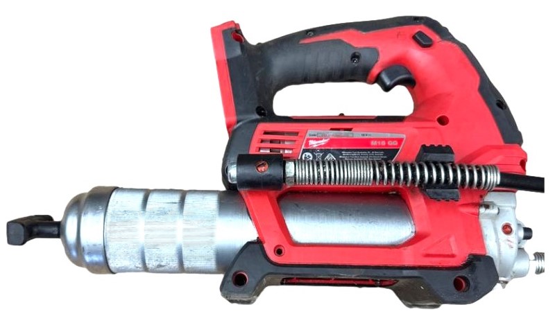 This robust MILWAUKEE M8 GG 18V Li-Ion Cordless 2-Speed Grease Gun is a versatile tool for lubrication tasks. With its powerful motor and two-speed settings, it delivers consistent grease flow to keep your equipment running smoothly. The cordless design provides freedom of movement, while the compact size makes it easy to manoeuvre in tight spaces. This skin-only model is in good condition, showing minimal signs of wear from previous use.