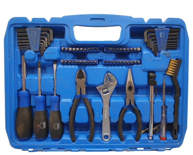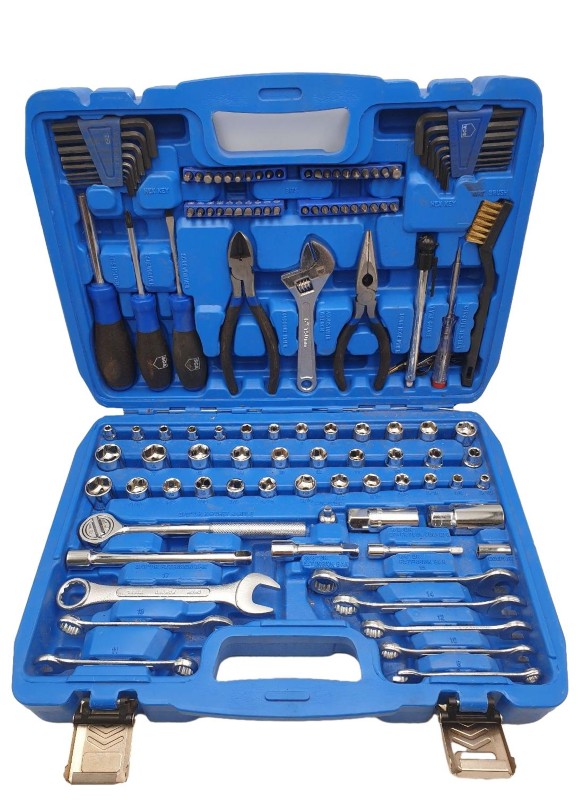 This comprehensive SCA BMC Tool Kit contains 117 essential hand tools for a wide range of DIY and automotive tasks. Featuring high-quality chrome vanadium steel construction, the tools are built to withstand heavy use and provide reliable performance. The kit includes an assortment of sockets, wrenches, pliers, screwdrivers, and other essential tools, making it a versatile choice for home workshops, garages, and toolboxes.