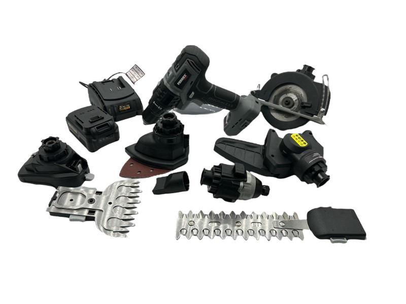 Accessories: Inc Batery + Charger + Powertool + Attachments(Drill,Circular Saw,Grass Shear/Trimmer,Chainsaw,Sander,Impact Driver