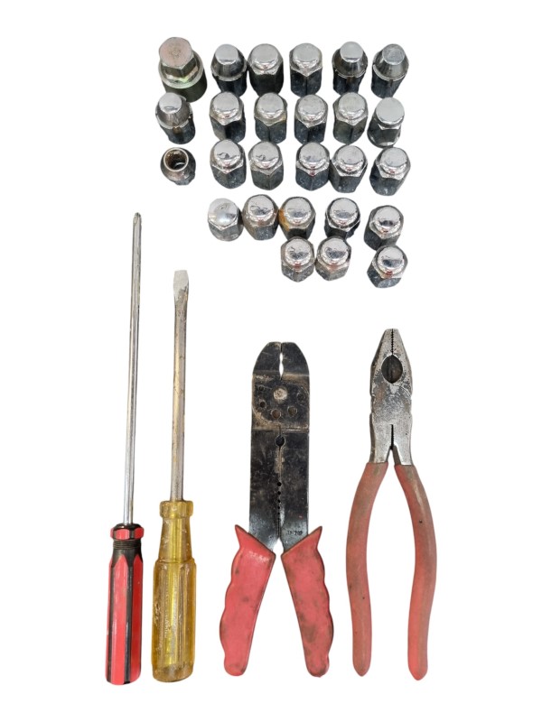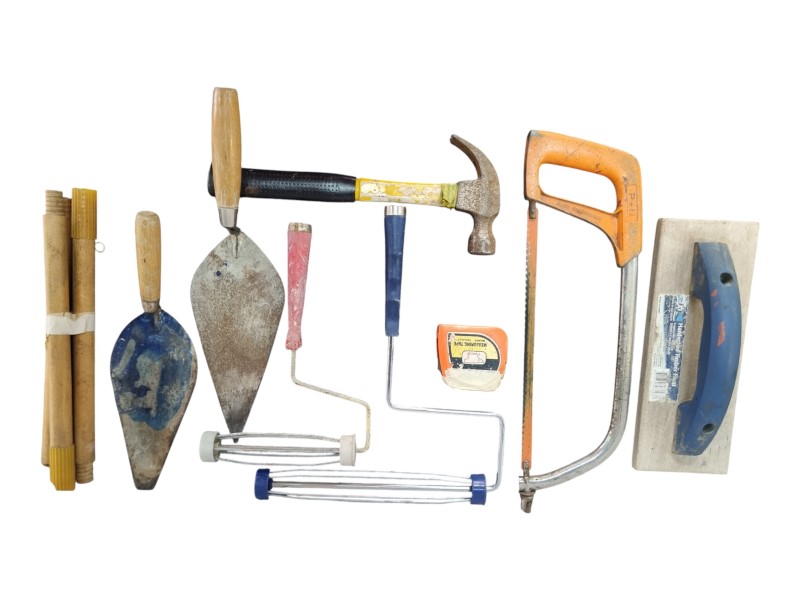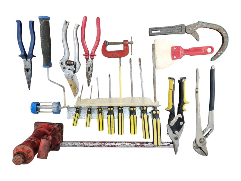 This assorted collection of hand tools has been well-used, but remains in working condition. The variety of tools included can assist with a wide range of tasks around the home or workshop. Whether you're a DIY enthusiast or need a basic set of essentials, this kit offers the versatility to handle numerous projects.
