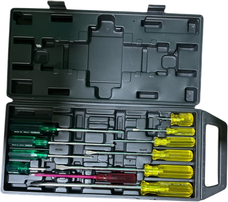 This Stanley 13-piece screwdriver set is a versatile and reliable hand tool essential for any DIY enthusiast or professional. Crafted with high-quality materials, it features a range of screwdriver bits to tackle a variety of tasks, from delicate electronics repair to heavy-duty construction projects. The ergonomic handles provide a comfortable and secure grip, while the durable construction ensures long-lasting performance.