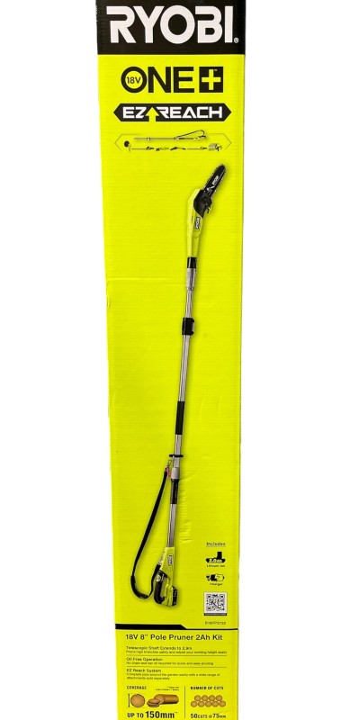 This Ryobi R18PPS132 18V 8" Pole Pruner 2.0Ah Kit is a versatile hand tool perfect for trimming and pruning. The 8-inch blade provides ample cutting power, while the telescoping pole extends to reach high branches. Powered by an 18V battery, this pruner offers cordless convenience and mobility for your gardening tasks. With its ergonomic design and lightweight construction, it's easy to maneuver and use for extended periods.
