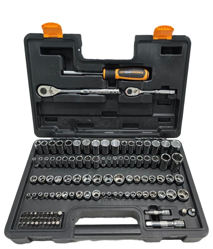 This GEARWRENCH 115 Piece Socket Set is a comprehensive collection of essential hand tools for a wide range of automotive and DIY applications. Featuring a selection of sockets, extensions, and accessories, this set provides the versatility to tackle various fastening tasks with ease. The tools are constructed with durable materials to withstand regular use, ensuring long-lasting performance.