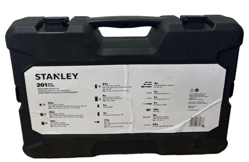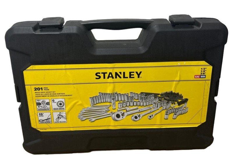 This premium 201-piece socket set from STANLEY is a comprehensive tool kit that caters to a wide range of automotive and DIY tasks. Featuring a diverse selection of sockets, wrenches, and accessories, this set provides the versatility needed to tackle a variety of projects with ease. The robust construction and thoughtful design ensure long-lasting performance and reliable results.