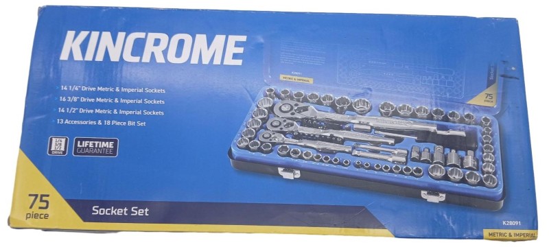 This Kincrome K28091 1/4", 3/8" & 1/2" Drive Metric and Imperial Socket Set is a comprehensive 75-piece tool kit. Featuring a range of metric and imperial sockets, it provides the versatility to tackle a variety of automotive and household tasks. The sockets are constructed from durable chrome vanadium steel for long-lasting performance, and the set includes a selection of popular drive sizes to suit your needs.