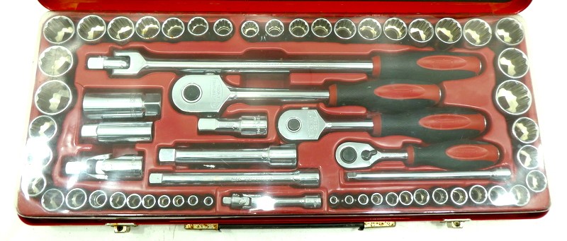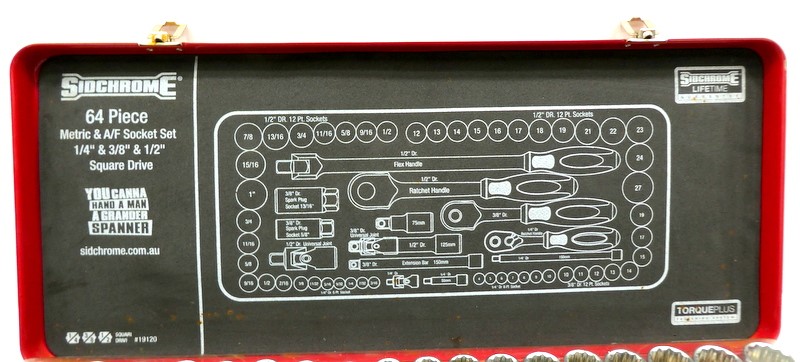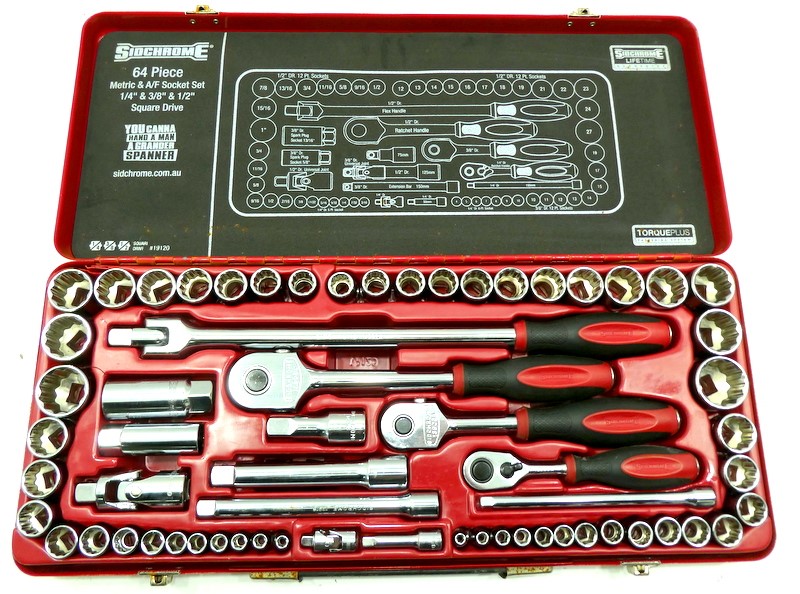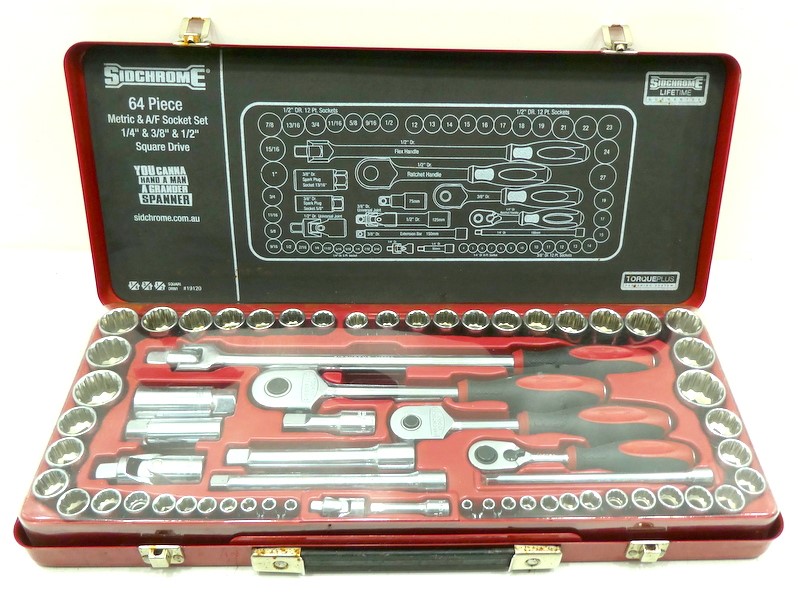This Sidchrome 64-piece 1/4", 3/8" and 1/2" drive socket set is a versatile and durable tool for a wide range of automotive and home repair tasks. Featuring a comprehensive selection of metric and AF sockets, this set provides the necessary tools to tackle a variety of fastening jobs with ease. The sockets are constructed from high-quality materials, ensuring long-lasting performance and reliability.