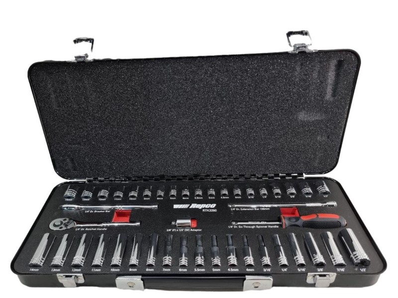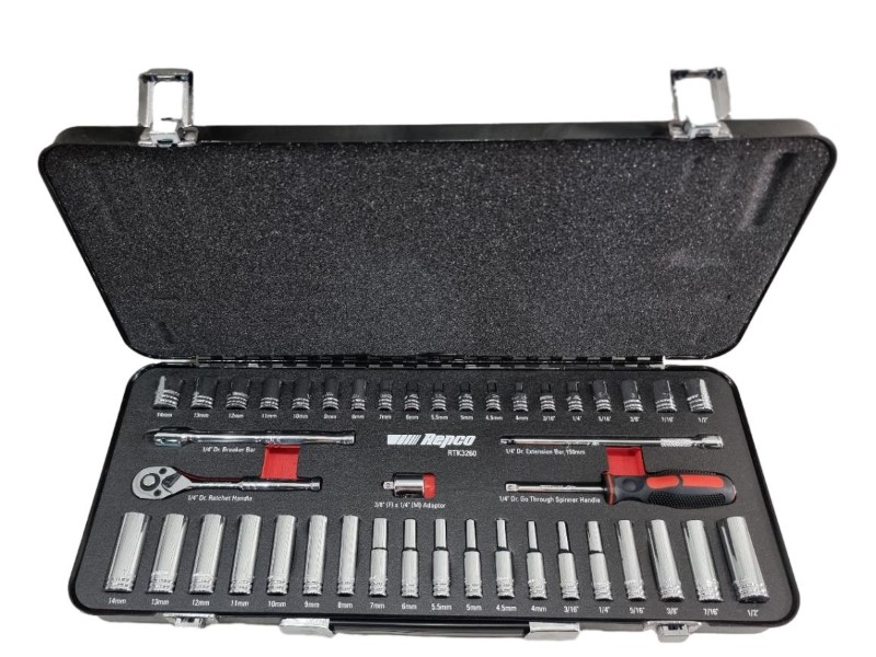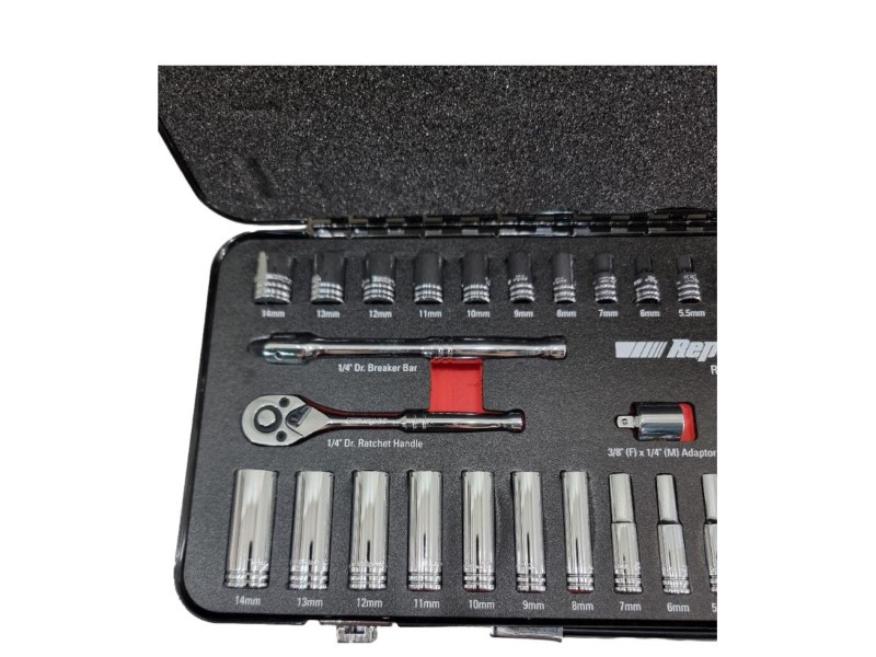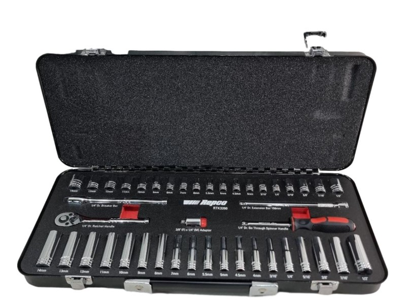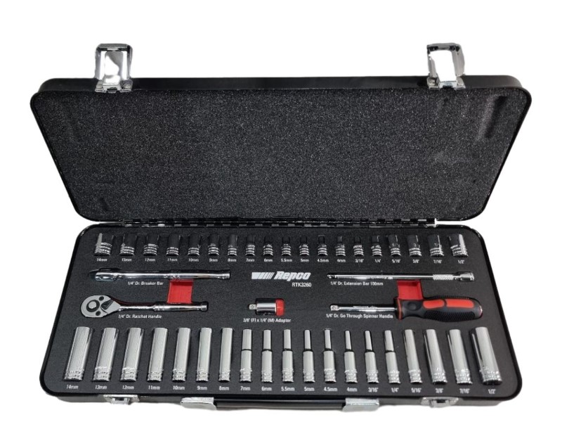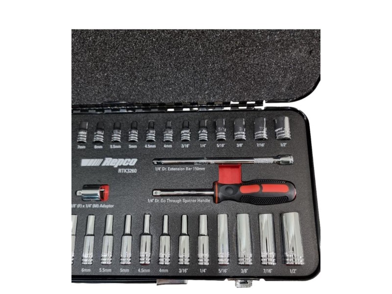 This high-quality Repco RTK3260 socket set is a versatile addition to any toolkit. Crafted with precision, it offers a comprehensive range of sockets to tackle a variety of tasks. The set is in good condition, with minimal signs of wear, ensuring reliable performance for your projects.