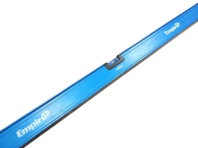 This Empire E875.48 48"/1219mm spirit level has been well used but remains in working condition. It is a reliable tool for ensuring accurate horizontal and vertical measurements on a variety of projects. Its durable construction and easy-to-read bubble vials make it a practical choice for DIY enthusiasts and tradespeople alike.