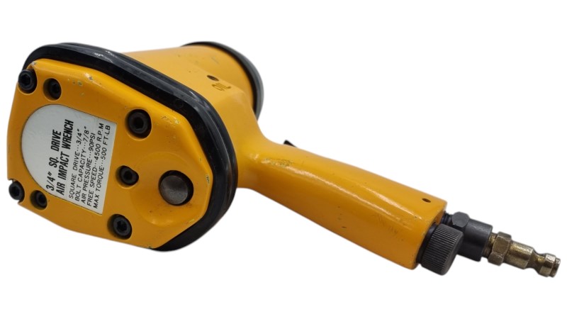 This robust Toolex Air Wrench Impact 3/4" is a reliable hand tool for tightening and loosening bolts and nuts. Its 3/4" drive provides ample torque for heavy-duty applications. With a well-used but functional design, this wrench is a practical choice for workshops, garages, and DIY enthusiasts.
