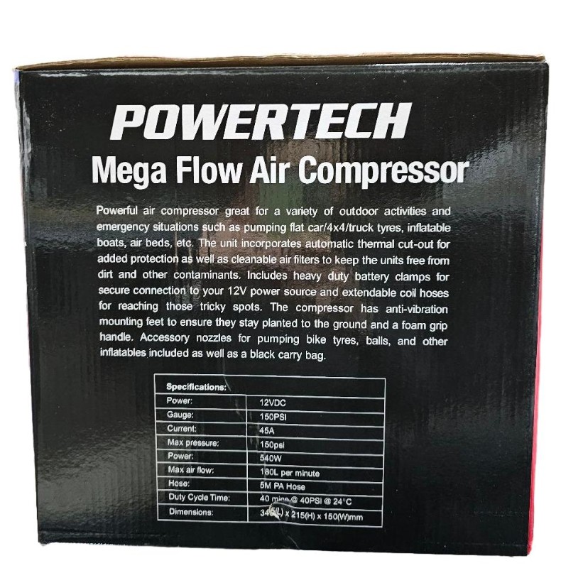 This POWERTECH MC7200 direct drive air compressor is a reliable and versatile power tool for a variety of industrial and workshop applications. With its robust construction and efficient performance, it delivers the air power you need to tackle a wide range of tasks. The compact design makes it easy to transport and store, while the durable components ensure long-lasting use.