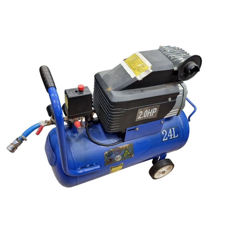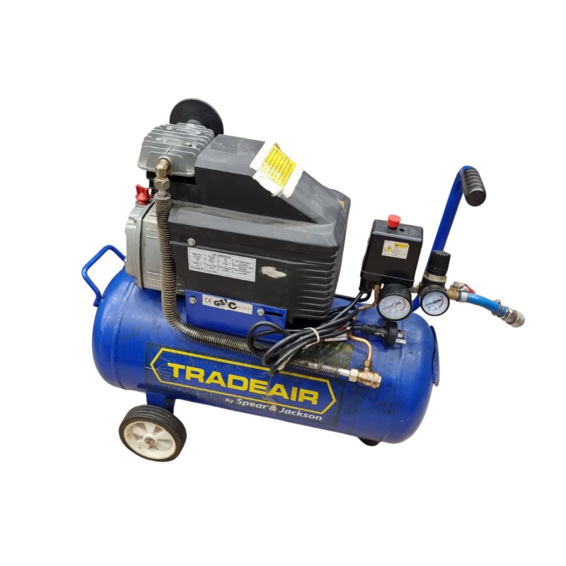 This robust TRADEAIR TA-2HP direct drive air compressor is a dependable workhorse for a variety of pneumatic tool applications. With its powerful 2HP motor, it can deliver impressive air output to keep your tools running smoothly. The direct drive design ensures efficient power transfer for reliable performance. This unit has been well-used but remains in working condition, ready to tackle your next project.