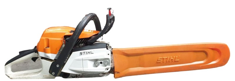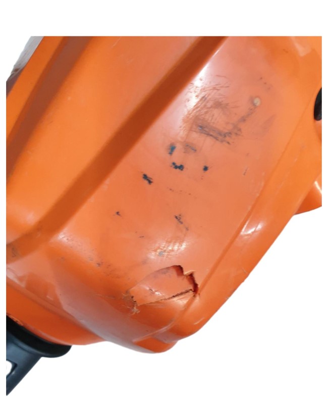 This STIHL MS261C cordless petrol-powered chainsaw is a well-used but still functional power tool. With a 2-stroke engine, it delivers reliable performance for a variety of cutting tasks. While the casing has some cracks, the chainsaw remains in working condition and ready to tackle your next project.