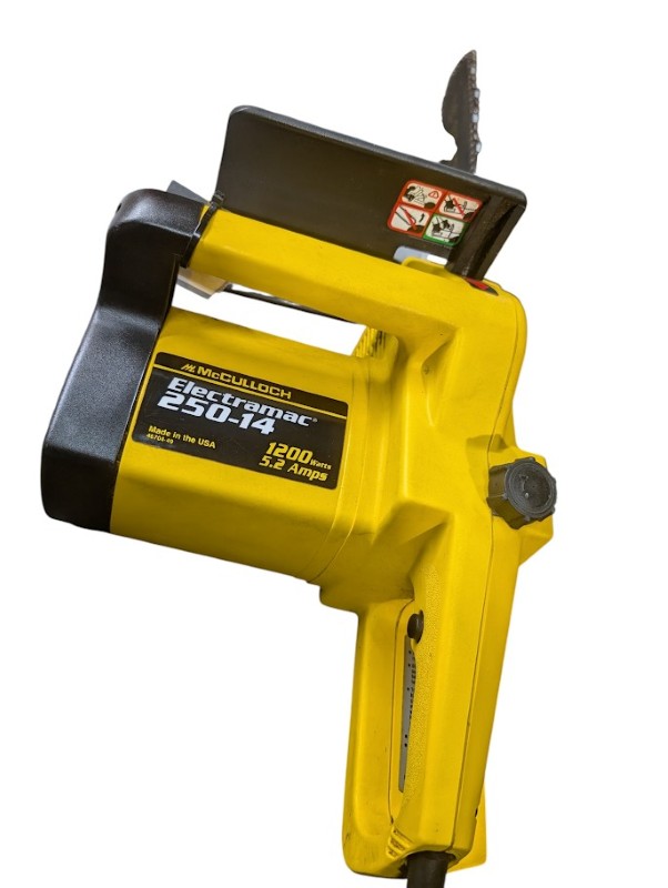 This MCCULLOCH ELECTROMAC 250-14 chainsaw is a reliable and powerful tool for various outdoor tasks. With its robust construction and efficient performance, it can handle a range of cutting jobs with ease. The chainsaw's ergonomic design and easy-to-use controls make it a practical choice for both professional and DIY users.