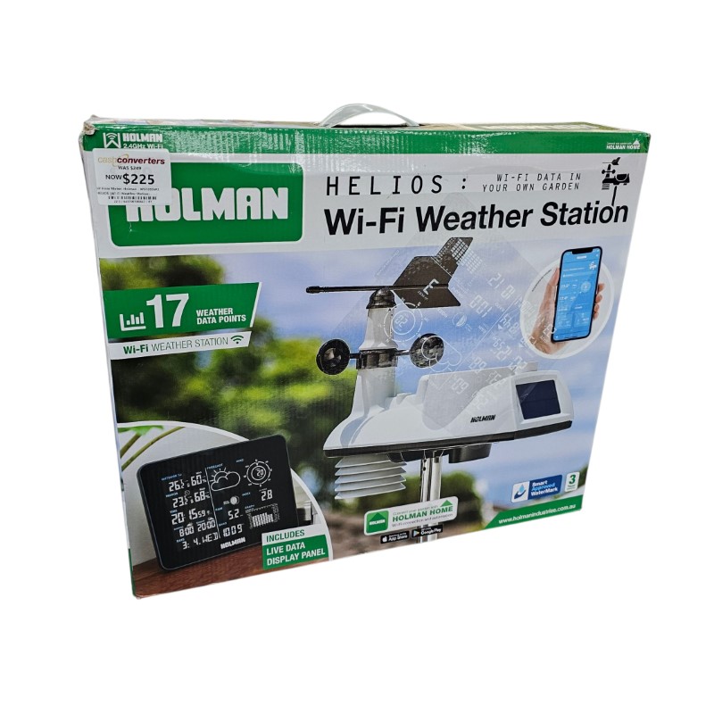 This Holman HELIOS (Wi-Fi Weather Station) WS5095W2 air flow meter is a versatile and reliable tool for your compressed air needs. Featuring a sleek and modern design, it offers precise measurements and seamless connectivity via Wi-Fi, making it a valuable asset in any workshop or industrial setting.
