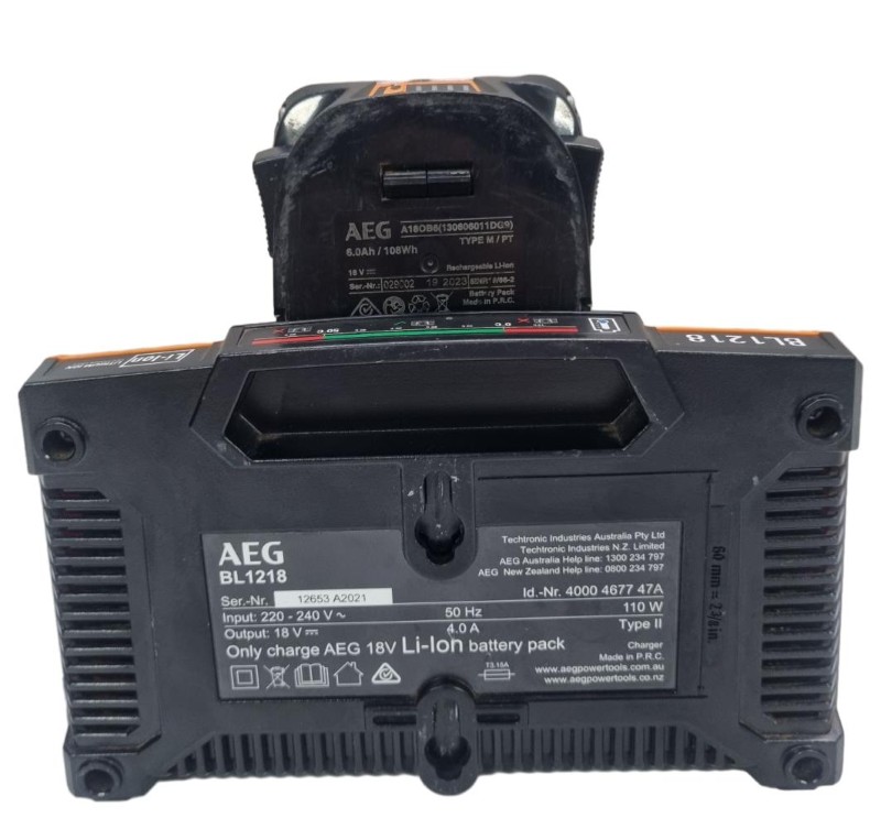 This high-capacity AEG Force Lithium Ion 6Ah 18V battery is a reliable power source for your cordless tools. With its 18V voltage and impressive 6Ah capacity, it delivers long-lasting performance to tackle a wide range of tasks. The battery is in good condition, showing little sign of wear, ensuring reliable power when you need it.