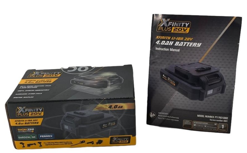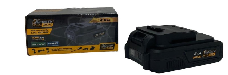 This XFINITY PLUS 20V lithium-ion battery delivers reliable power for your cordless tools. With a 4.0Ah capacity, it provides extended runtime for demanding jobs and consistent performance throughout the charge cycle. The lightweight design makes it easy to handle during extended use.
