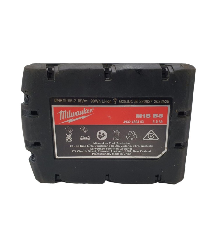 This powerful Milwaukee M18 B5 5.0ah cordless tool battery delivers exceptional runtime and performance. Designed for use with compatible Milwaukee M18 power tools, it provides a reliable and long-lasting power source for a variety of tasks. With its compact and ergonomic design, this battery integrates seamlessly into your toolkit for enhanced productivity on the job site.