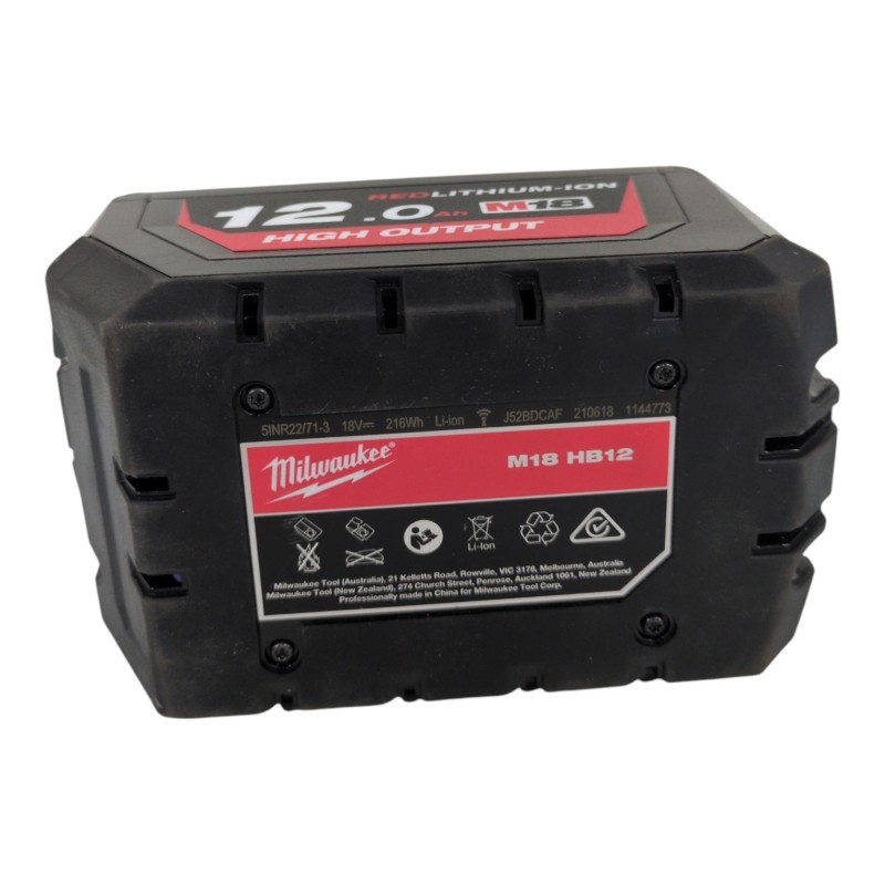 This high-capacity 18V Milwaukee M18 HB12 cordless tool battery provides extended runtime for your power tools. With a 12Ah capacity, it delivers ample power and runtime to tackle demanding tasks. The compact design allows for easy handling and integration with your Milwaukee M18 cordless power tools. This battery is in good condition with little sign of wear, making it a reliable choice for your tool kit.