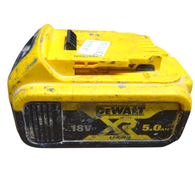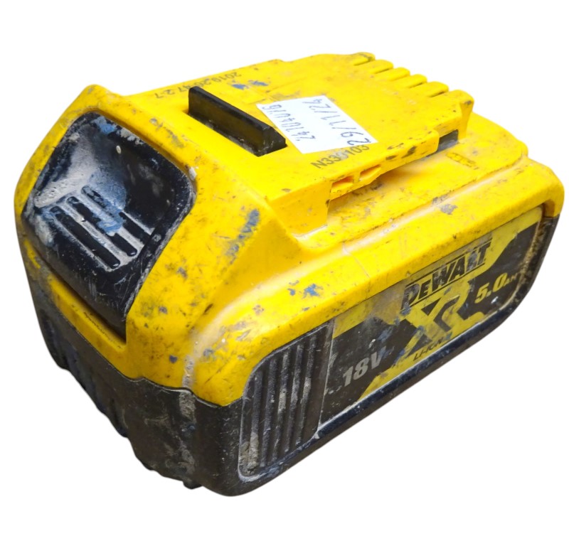 This robust Dewalt DCB184-XE cordless tool battery offers a substantial 5.0Ah capacity to power your Dewalt power tools with extended runtime. While it shows signs of heavy use, the battery remains fully functional and ready to get the job done. Reliable and durable, this battery is an essential accessory for any Dewalt cordless tool user.