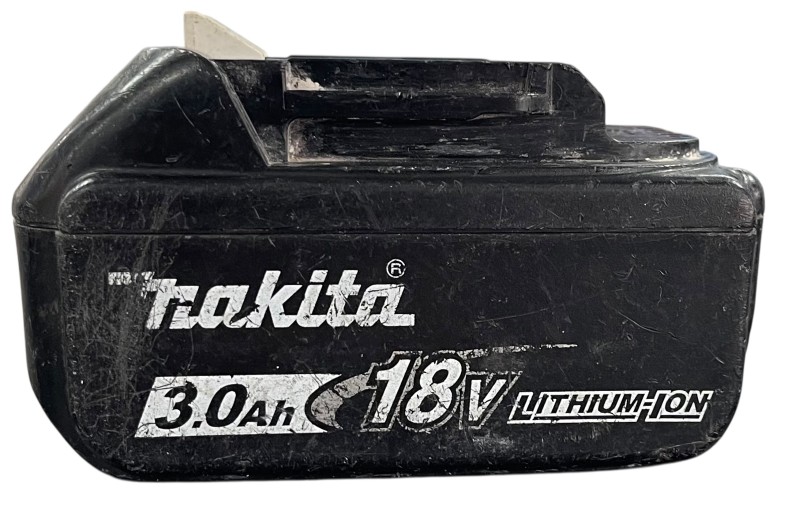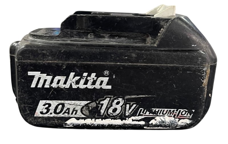 This robust Makita BL1830 cordless tool battery is a reliable power source for your Makita power tools. Designed for long-lasting performance, it delivers consistent power to keep your tools running. While it shows signs of heavy use, this battery remains functional and ready to tackle your next project.