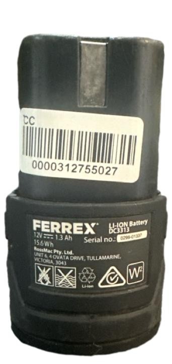 This FERREX DC3313 cordless tool battery has been well used but is still in working condition. It is compatible with a range of FERREX power tools, providing a reliable power source for your DIY and home improvement projects. With its compact design and long-lasting charge, this battery can help you tackle tasks efficiently and conveniently.