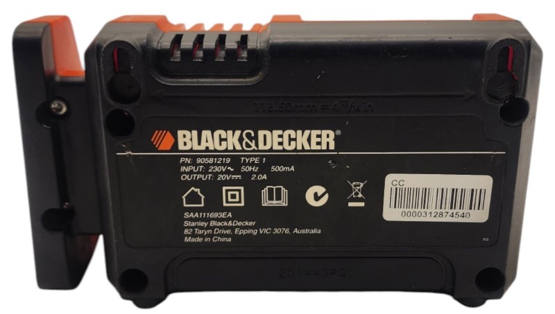 This Black & Decker 20V cordless tool charger is a reliable and essential accessory for anyone with Black & Decker cordless power tools. It efficiently charges your tool batteries, keeping your devices ready to use whenever needed. With its sturdy construction and straightforward operation, this charger is a practical solution for maintaining your cordless power tool setup.