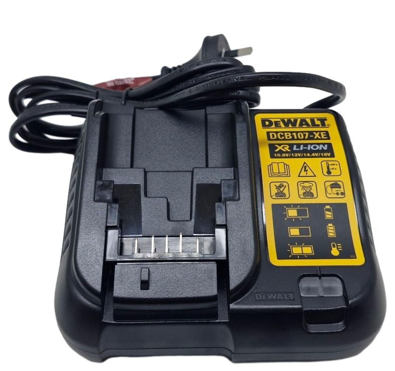 This DEWALT DCB107-XE cordless tool charger is a reliable and efficient power tool accessory. Designed for convenient charging, it is compatible with a range of DEWALT cordless power tools, ensuring your equipment is always ready for use. With its compact and durable construction, this charger is a practical addition to any workshop or jobsite.
