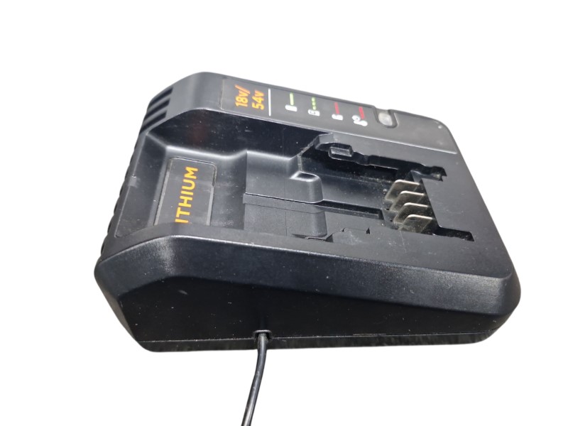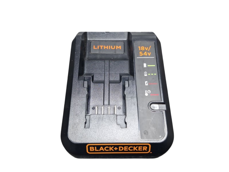This Black + Decker BDC2A-XE cordless tool charger is a versatile power tool accessory. It is compatible with 18V and 54V batteries, making it suitable for a wide range of cordless power tools. Despite some minor signs of wear, the charger remains in good condition and ready to reliably charge your batteries.
