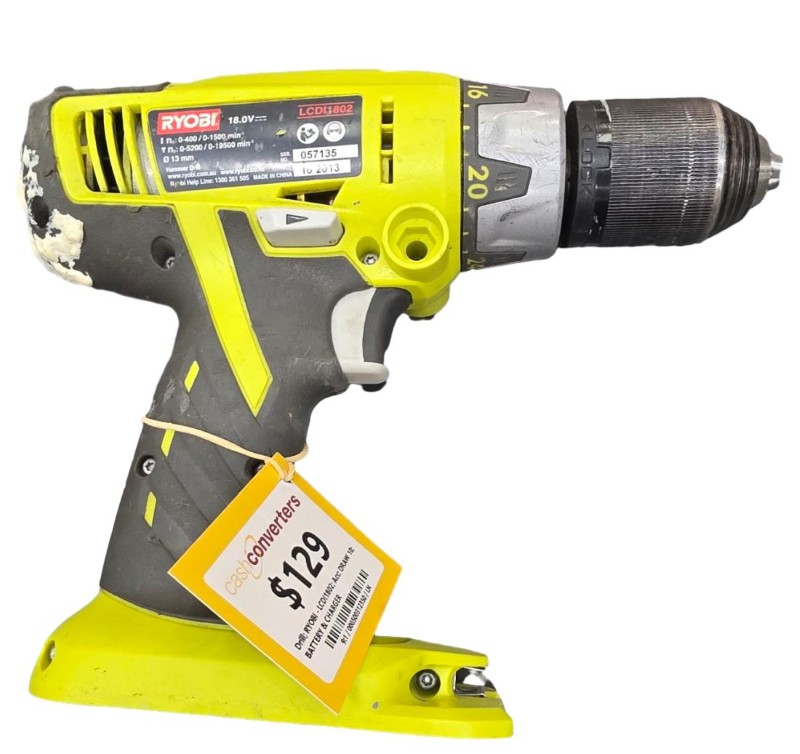 This powerful RYOBI LCDI1802 18V drill is a versatile tool for a variety of DIY and home improvement tasks. With its robust 18V motor, it delivers impressive drilling power to tackle even the toughest materials. The included battery and charger ensure you can keep this drill running for as long as needed.