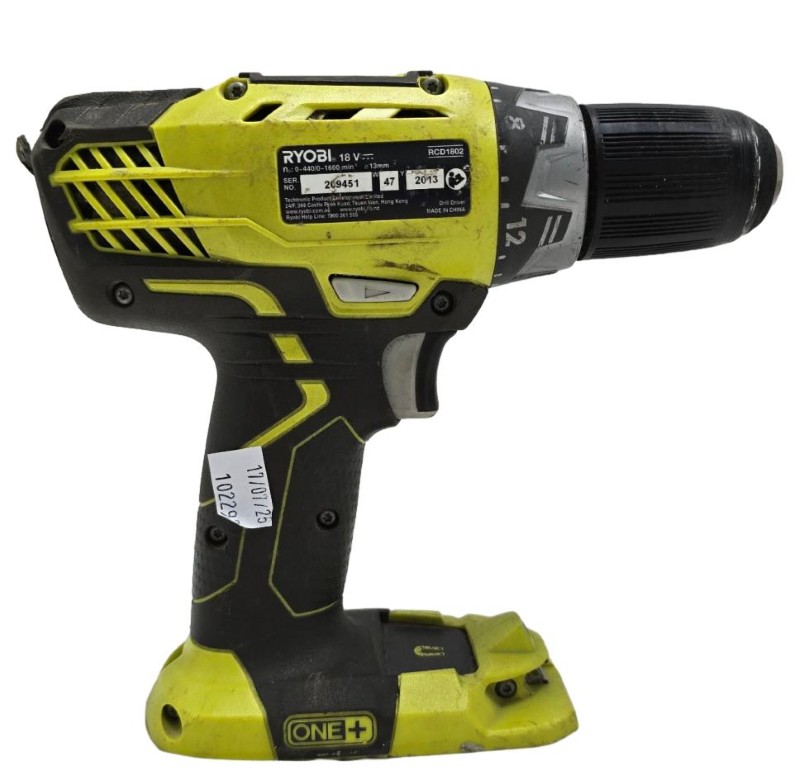 This Ryobi RCD1802 power drill has been well-used but remains in working condition. It offers reliable performance for a variety of drilling tasks. The compact and ergonomic design provides comfortable handling, while the variable speed trigger allows for precise control. This secondhand tool could be a practical addition to your workshop or DIY toolkit.
