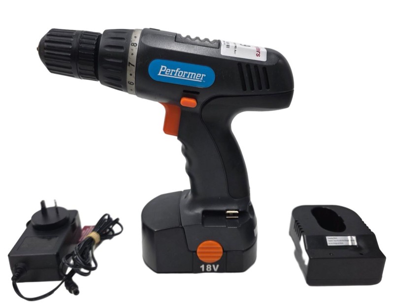 This powerful PERFORMER JOZ-ZG07-180 cordless drill is a versatile tool for a variety of DIY and construction projects. Powered by an 18V battery, it delivers reliable performance and runtime to get the job done efficiently. While it may show signs of previous use, this drill remains in working condition and is ready to tackle your next task.