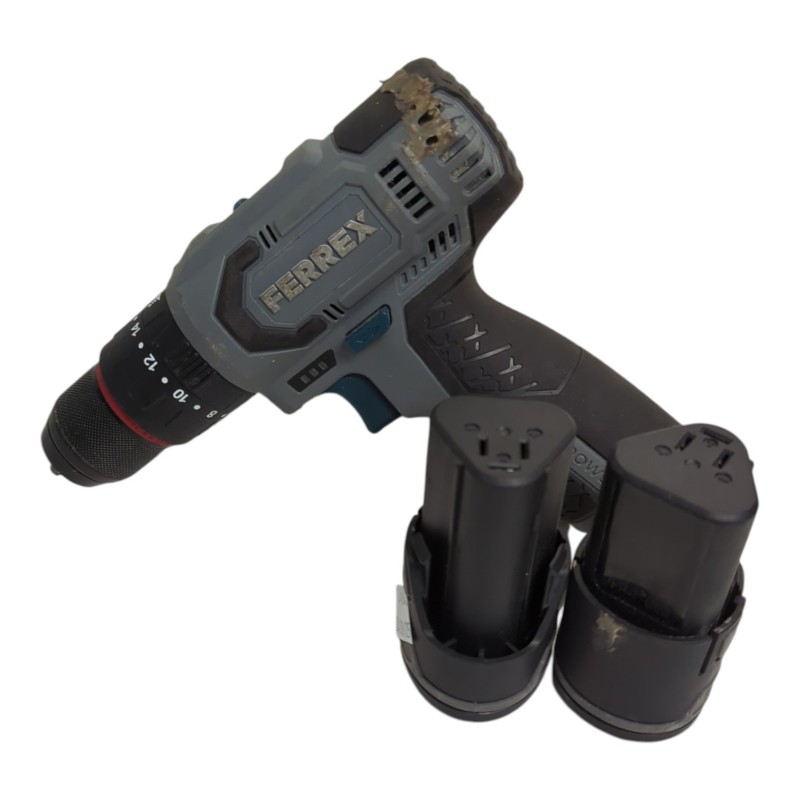 This robust and versatile Ferrex power drill is a reliable tool for a variety of drilling tasks. With its powerful motor and 2 included batteries, it provides ample runtime to tackle even the most demanding projects. The USB charging capability ensures convenient recharging when needed. Though well-used, this drill remains in good working condition and is ready to assist with your next DIY or home improvement endeavour.