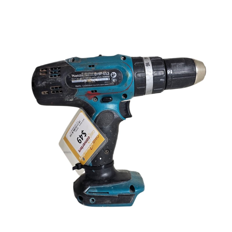 This Makita BHP453 drill is a reliable power tool that has been well-used, making it a practical choice for your DIY or professional needs. Its robust construction and versatile functionality make it a dependable companion for a variety of drilling and fastening tasks. With its ergonomic design and easy-to-use controls, this drill offers efficient and comfortable operation, allowing you to tackle your projects with confidence.