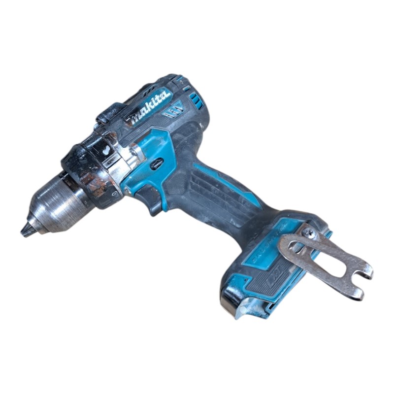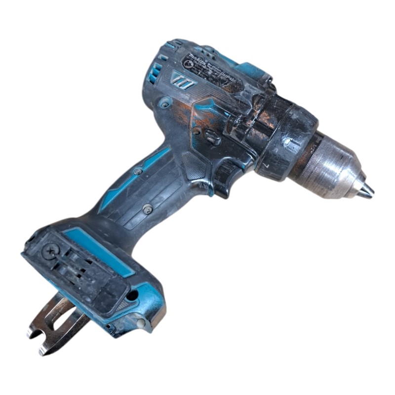 This Makita DHP486 cordless drill is a reliable power tool that has been well-used but remains in working condition. Its brushless motor delivers ample power and runtime for a variety of drilling and driving tasks. The compact and ergonomic design ensures comfortable operation, while the variable speed trigger and two-speed gearbox provide precise control. This versatile tool is suitable for a range of DIY and professional applications.