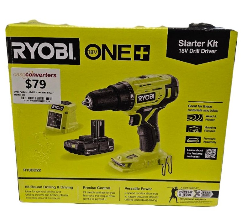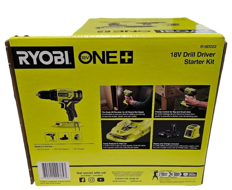 This powerful Ryobi 18V Drill Driver Starter Kit is a versatile cordless power tool that delivers impressive performance. Equipped with an 18V battery, it provides ample power for a wide range of drilling and driving tasks. The compact and ergonomic design ensures comfortable and efficient operation, making it a valuable addition to any DIY enthusiast's toolkit.