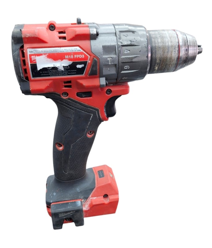 This Milwaukee M18FPD30 18V Li-ion Cordless Brushless Hammer Drill is a powerful tool designed for a variety of drilling tasks. Its cordless design provides freedom of movement, while the brushless motor delivers efficient performance. This is a skin-only unit, meaning it does not include a battery or charger.