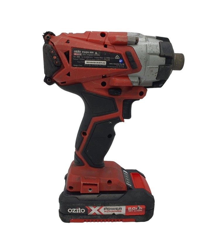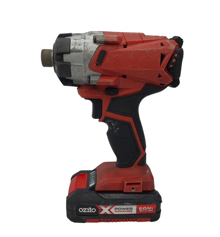 This Ozito PXIDS-300 cordless impact driver is a powerful and versatile tool for a variety of drilling and fastening tasks. With an 18V battery, it delivers impressive torque and impact force to tackle even the toughest jobs. Designed for convenience, this impact driver is cordless for maximum mobility. While it shows signs of heavy use, it remains in functional condition and ready to assist with your next project.