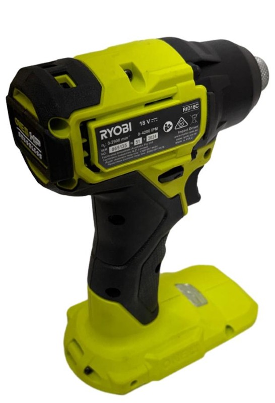 This powerful Ryobi RID18C 18V cordless impact driver delivers impressive performance for a range of DIY and trade tasks. Its compact and lightweight design allows for easy handling and access in tight spaces. The tool features a high-torque motor and variable speed trigger for precise control. With its cordless convenience, you can work efficiently without being tethered to a power source. This item is in good condition, with only minor signs of wear and a couple of light marks.
