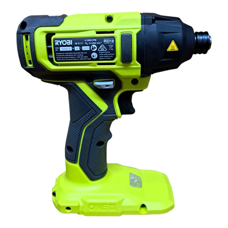 This Ryobi RID18 impact driver is a reliable power tool that can handle a variety of tasks. With its compact and ergonomic design, it offers impressive power and performance for DIY projects and light-duty work around the home or workshop. The tool delivers up to 1,800 in-lbs of torque, making it suitable for driving screws, bolts, and other fasteners with ease. Its brushless motor ensures efficient and long-lasting operation, while the variable speed trigger provides precise control. This impact driver is a versatile addition to any tool collection.