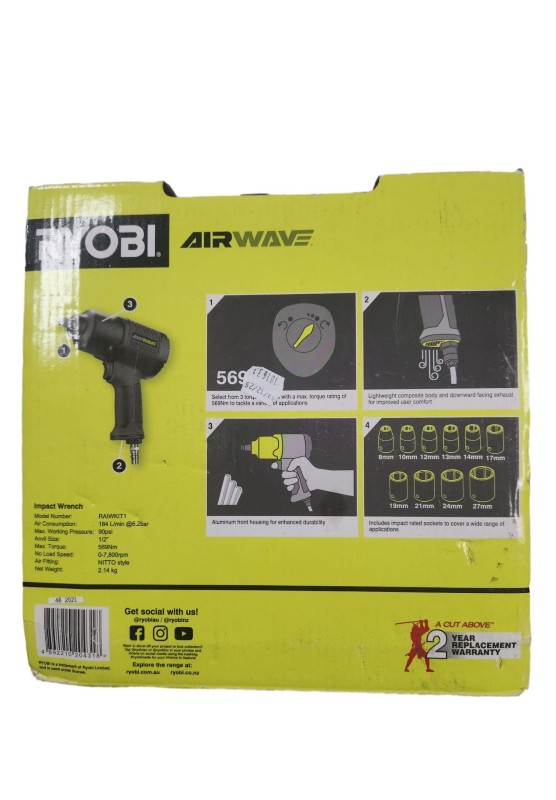 This RYOBI RAIW12B rattle gun is a versatile power tool that delivers impressive impact performance for a variety of tasks. With its robust and durable construction, it can handle demanding applications with ease. The compact and lightweight design ensures comfortable and efficient use, making it a valuable addition to any workshop or job site.