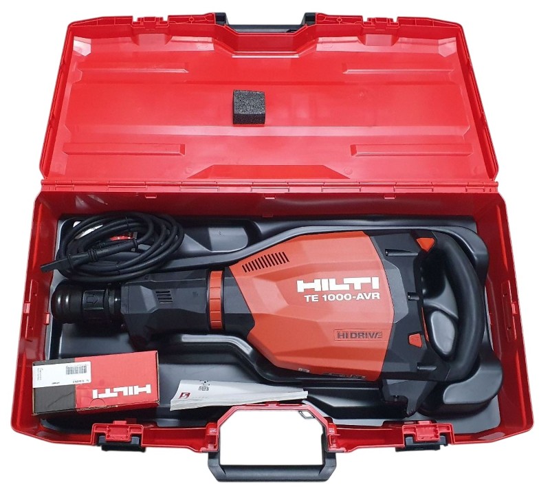 This powerful Hilti TE 1000-AVR HiDrive Demolition Hammer is a versatile and reliable power tool for a range of demolition and heavy-duty applications. With its electric power source, this jack hammer delivers impressive performance and efficiency. The included hard case, manual, grease, power cable, and attachments ensure you have everything needed to get the job done.
