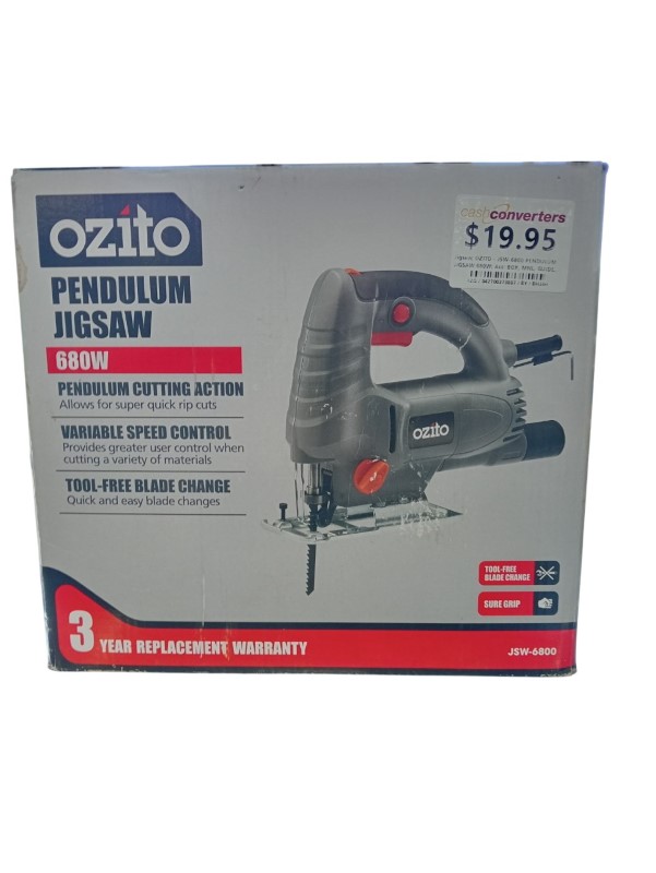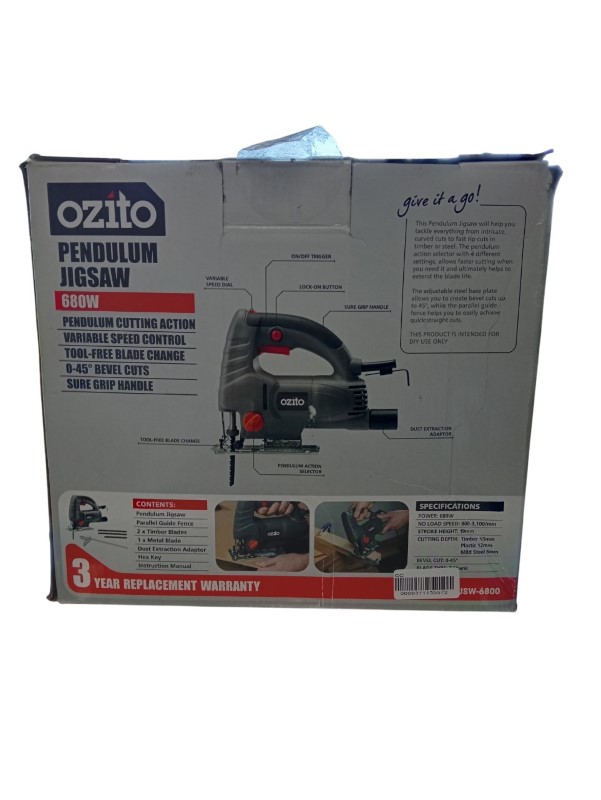 This powerful OZITO JSW-6800 PENDULUM JIGSAW 680W is a versatile tool for a range of cutting tasks. With a robust 680W motor, it delivers impressive power and performance. The pendulum action provides smooth, clean cuts through a variety of materials. Included are a box, manual, guide, and spare blade, allowing you to get started right away.