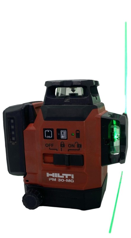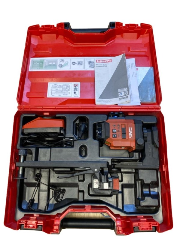 This Hilti PM 30-MG laser level is a versatile and reliable tool for a variety of construction and DIY projects. Featuring a rechargeable battery, it provides cordless convenience and portability. The included case, charger, manual, and spare battery ensure you have everything needed to get started. With little sign of wear, this laser level is in good condition and ready to assist you in your next task.