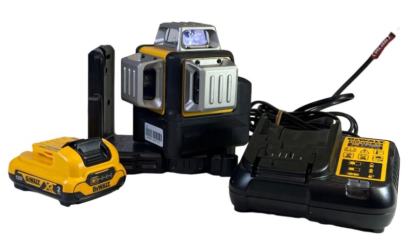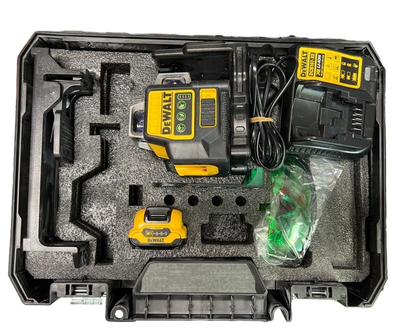 This DEWALT DCE089G laser level is a reliable and versatile tool for a variety of construction and DIY projects. Featuring a rechargeable battery, it provides cordless convenience and portability. The included hard case ensures safe storage and transport. With little sign of wear, this laser level is in good condition and ready to assist you with your tasks.