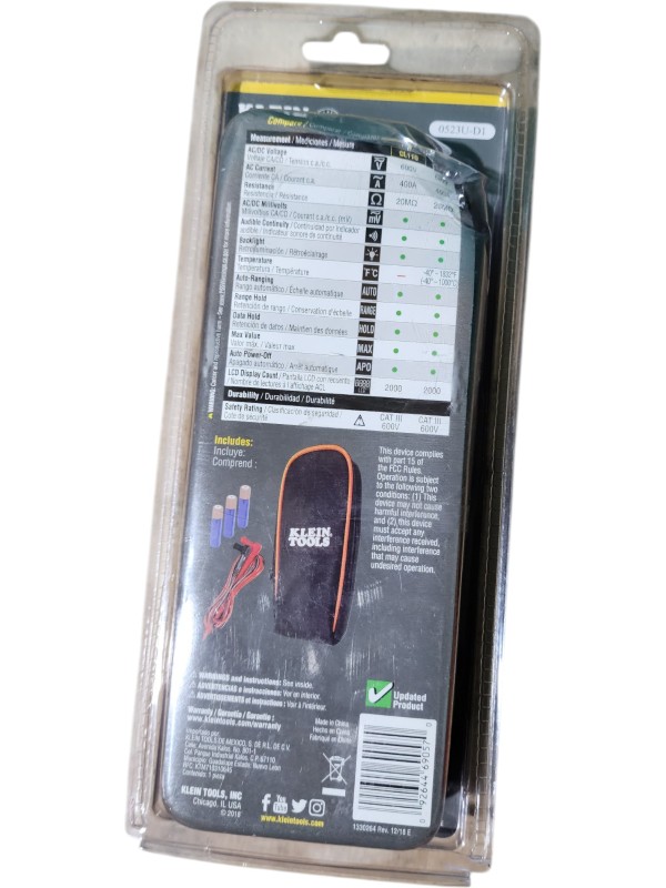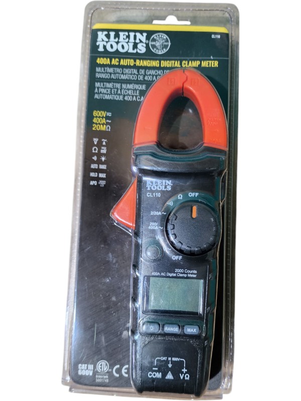 This KLEIN TOOL CL110 400A AC auto-ranging digital clamp meter is a versatile and reliable tool for electrical measurements. With its large 40mm jaw capacity, it can easily accommodate a wide range of cable sizes. The auto-ranging feature ensures accurate readings without the need for manual range selection. This clamp meter offers a range of functions, including AC current, AC/DC voltage, resistance, and continuity testing, making it a valuable asset for electricians, technicians, and DIY enthusiasts.
