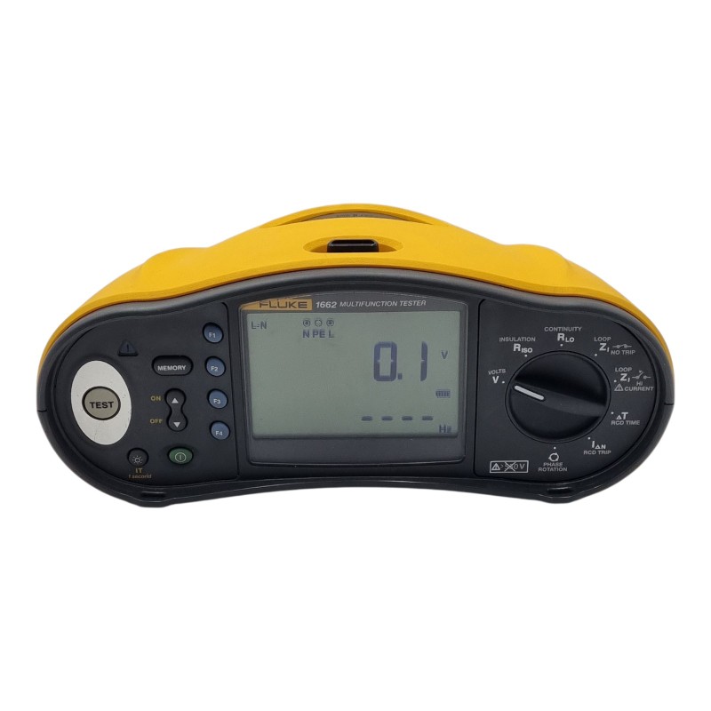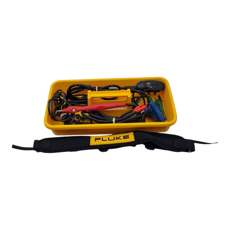 This Fluke 1662 Multifunction Tester is a versatile and reliable multimeter suitable for a range of electrical and power tool applications. With various leads, power supply, and a storage case included, this multimeter offers convenience and portability. The device is in good condition with little sign of wear, making it a practical choice for your electrical testing needs.