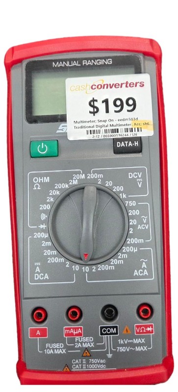 This Snap-On eedm503d Traditional Digital Multimeter is a reliable and versatile tool for electrical measurements. Featuring a comprehensive range of functions, it allows you to accurately test voltage, current, resistance, and more. With its user-friendly design and easy-to-read display, this multimeter is an essential addition to any toolkit.
